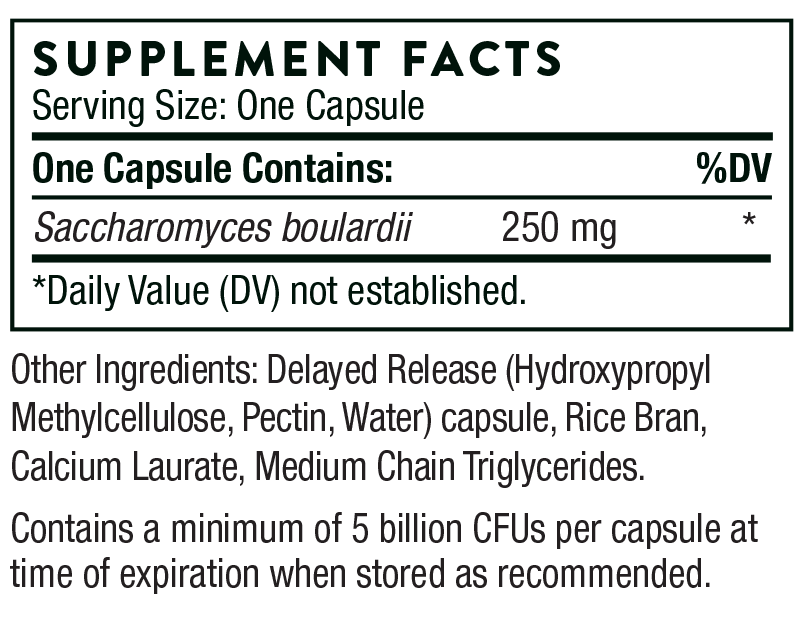In clinical studies, Saccharomyces boulardii has demonstrated its ability to increase the production of secretory IgA, the first-line defense immunoglobin of the gastrointestinal tract.* In addition to enhancing immune function in the gut, this yeast species also supports the growth of beneficial intestinal flora, and it can also be helpful for mitigating occasional diarrhea.* With a minimum of 5 billion CFUs per capsule, Thorne's Sacro-B provides substantial support to the health of the gastrointestinal tract.*