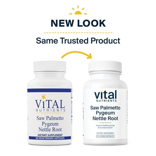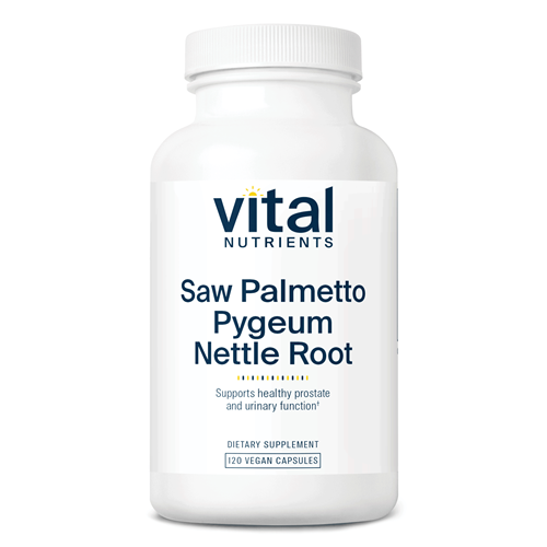 Saw Palmetto, Pygeum, and Nettle Root help maintain a healthy prostate gland and promote healthy urinary function.* Volatile oils and fatty acids contained in Saw Palmetto act as a urinary tonic and may promote inflammatory balance.* Pygeum bark is an herb traditionally used to support men’s urinary health, helping to maintain normal frequency, flow, and volume.* Nettle Root, a source of plant phytosterols, helps maintain healthy hormone metabolism in the prostate and assists in healthy urinary volume.*