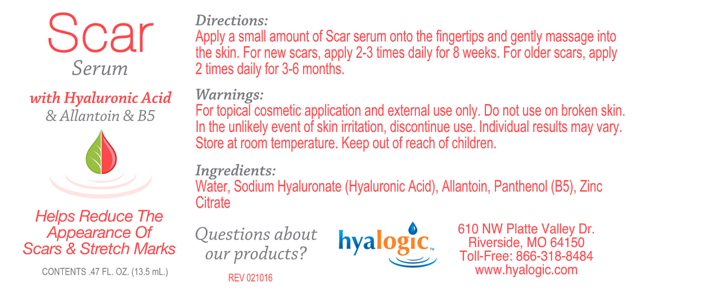 Directions: Apply a small amount of Scar serum onto the fingertips and gently massage into the skin. For new scars, apply 2-3 times daily for 8 weeks. For older scars, apply 2 times daily for 3-6 months.