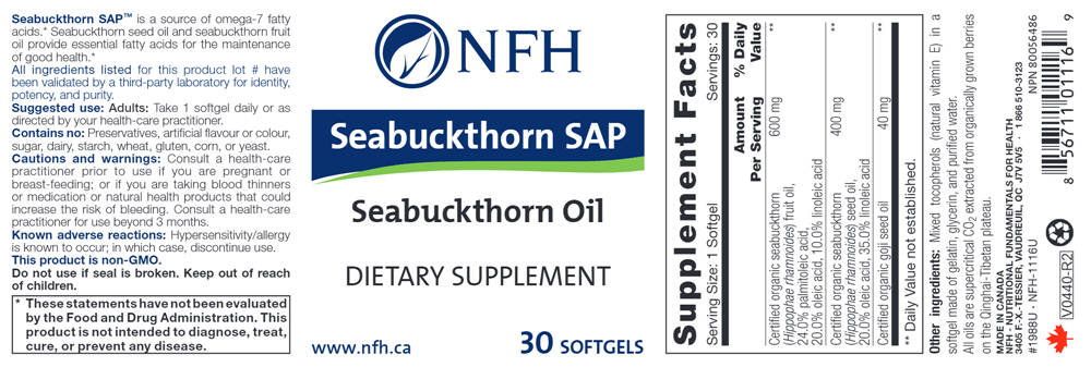Seabuckthorn SAP contains a source of omega‑7 fatty acids also known as palmitoleic acid. Seabuckthorn seed oil and seabuckthorn fruit oil provide essential fatty acids for the maintenance of good health. Seabuckthorn (SBT) is a deciduous shrub that is native to both Europe and Asia. SBT has been used in both Tibetan and Mongolian traditions for helping with fatigue and immune function. Omega‑7 oils have been shown to provide benefit in the gastrointestinal system, immune system, and cardiovascular system, as well as supporting healthy hair, skin, eyes, and nails.*