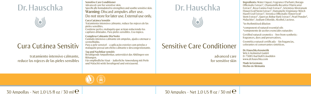 Skin cells are renewed every 28 days. Mirroring this same regenerative rhythm, Sensitive Care Conditioner should be used for 28 days in place of a toner. Apply nightly, after evening cleansing. Twist off tab at top of 1-2 ampules and empty contents into cupped hand. Press gently and evenly to skin until all Conditioner is absorbed – include eyes, lips, earlobes, neck and décolleté.