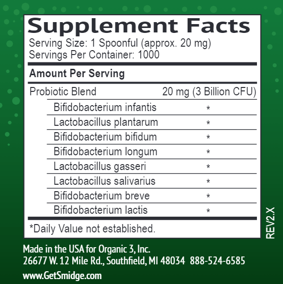 20 grams (1,000 servings), 3 billion CFUs per serving