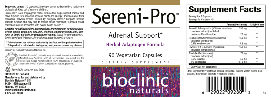 Theoretically, the herbs present in Sereni-Pro may have additive effects when used with sedative medications, such as benzodiazepines or CNS depressants, and should be used with caution when taken concomitantly. Consumption with alcohol, other drugs, or natural health products with sedative properties is not recommended.