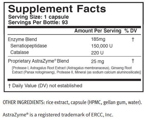 A pure plant source of serratiopeptidase, a systemic enzyme that accelerates and supports musculoskeletal systems by promoting healthy muscles and joints.