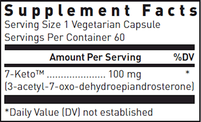 7-Keto™, provided by Douglas Laboratories, supplies 100 mg of 3-acetyl-7-oxo-dehydroepiandrosterone, (a naturally occurring metabolite of DHEA) in each capsule.