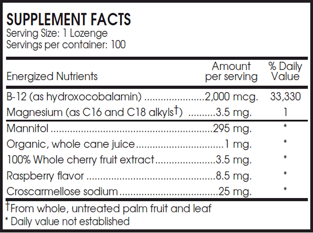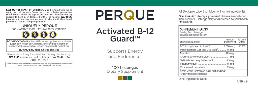 PERQUE Activated B-12 Guard™ delivers vitamin B-12 in its superior, activated hydroxocobalamin form to support energy and endurance. Our lozenge delivery system allows for maximal uptake and optimal absorption. Studies show that oral vitamin B12 uptake can be as effective as B12 injections. Patients notice that they feel better more quickly.*