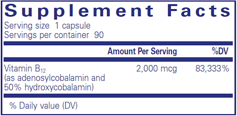 While methylcobalamin is found in the cytosol of cells and predominates in blood and other fluids, adenosylcobalamin is the major form of vitamin B12 stored in the mitochondria of cellular tissues. It is a key cofactor in carbohydrate metabolism for the enzyme methylmalonyl-CoA mutase used to produce succinyl-CoA. Optimal levels also support healthy synthesis of neuronal myelin.*