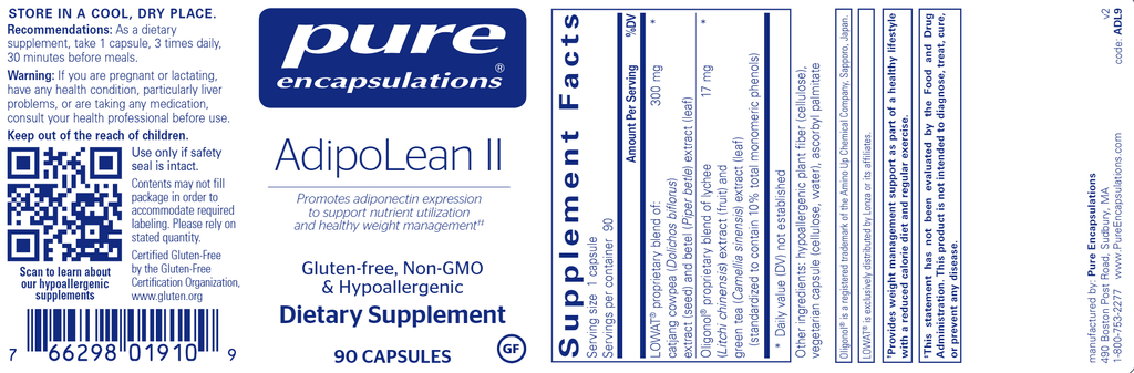 AdipoLean II promotes weight management by helping maintain a healthy visceral fat composition. Find the support you need for healthy weight loss with Pure Encapsulations AdipoLean II.