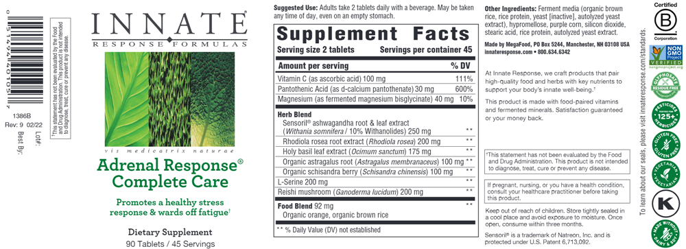 Suggested Use: 2 tablets daily, or as directed by your healthcare practitioner. May be taken at anytime throughout the day, even on an empty stomach.