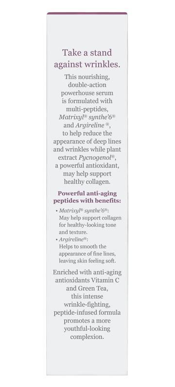 Advanced Peptides and Collagen Serum helps support skin’s need for moisture with Vitamin E, and highly effective antioxidants such as Vitamin C and Green Tea provide comprehensive anti-aging benefits.