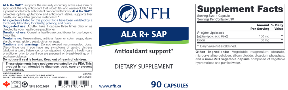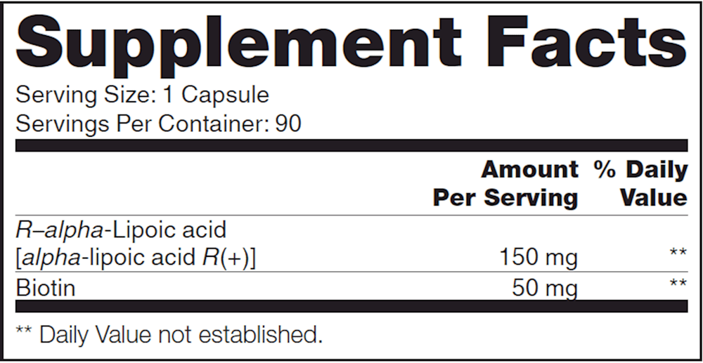 Alpha-Lipoic acid (ALA) R+ is the only antioxidant that is both fat- and water-soluble. This is important because alpha-lipoic acid can access all parts of living cells, giving it the ability to trap free radicals and help protect against oxidation. ALA R+ is one of the few substances that can cross the blood-brain barrier. ALA supplementation supports healthy glutathione levels, which helps the body metabolize toxins.*