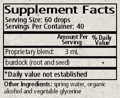 Ingredients: Organic fresh root and dry seed, 1:1 in a base of organic cane alcohol, spring water, and vegetable glycerin.