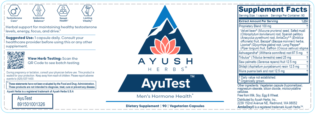 AYU-TEST™ (Formerly PURUSH™) is a unique blend of patented standardized Ayurvedic herbal extracts to help support the endocrine system*. Ayu-Test™ is a rejuvenating formula that increases strength and stamina.