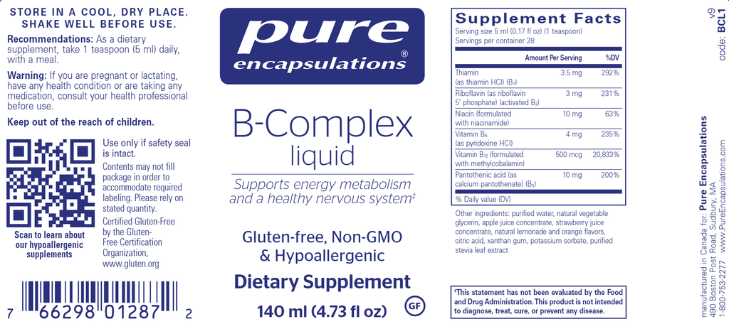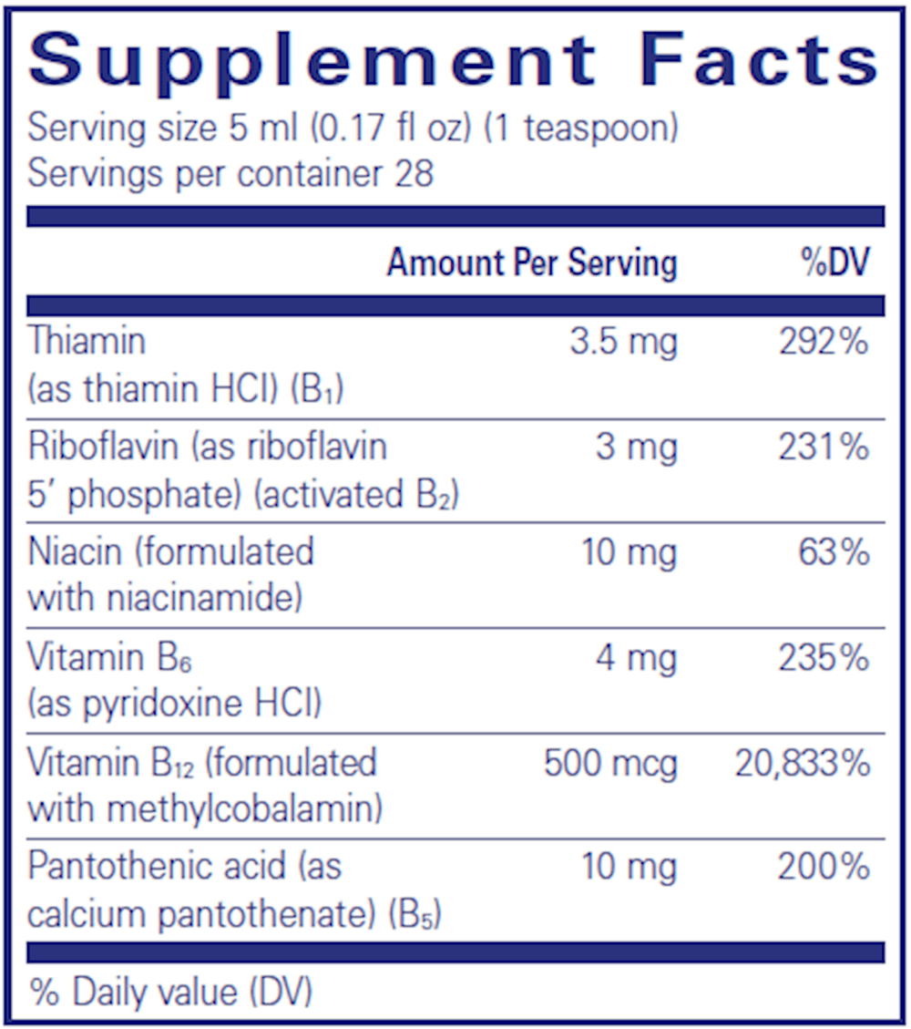 B-Complex liquid offers a comprehensive blend of B vitamins packed into a convenient liquid delivery form, designed to support cellular, cardiovascular, neurological and psychological health.