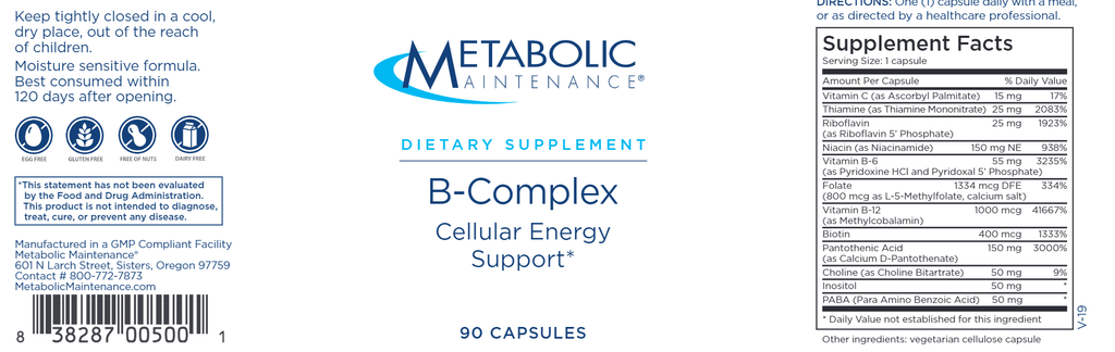What is B-Complex Phosphorylated? Metabolic Maintenance’s B-Complex Phosphorylated is a full-spectrum, high-potency B-Complex containing the bio-active phosphorylated forms of riboflavin (R5P) and Vitamin B-6 (P5P), and methylated forms of folate (L-methylfolate) and B-12 (methylcobalamin). B-vitamins are essential nutrients needed for numerous systems and biochemical reactions.
