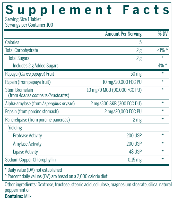 Chew 1 tablet with each meal, or as recommended by your health professional.
