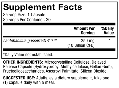 Lactobacillus gasseri BNR17™ works by converting dietary carbohydrates to indigestible fibers, called exopolysaccharides (EPS), in your gut and has been shown in clinical studies to help: