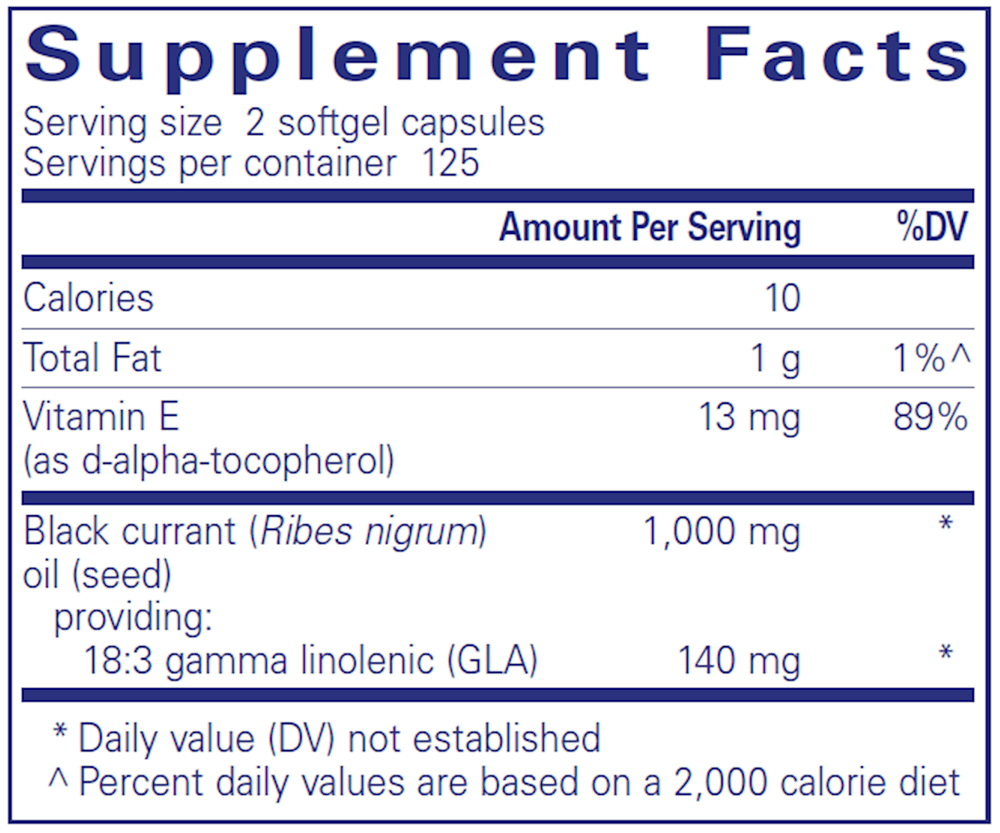 Black Current Seed oil provides support for joint health, immune function and premenstrual comfort in one dietary supplement.