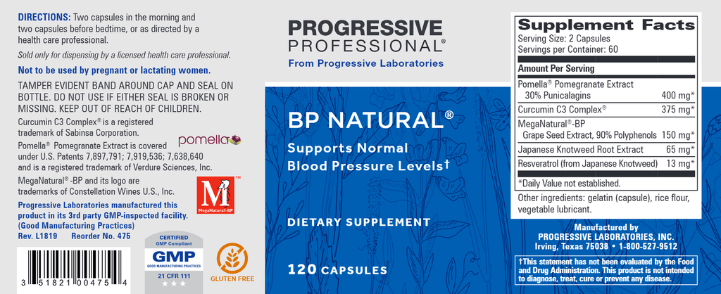 Nutritional support for normal range blood pressure, endothelial function and cardiovascular health containing pomegranate extract, curcumin, grape seed extract, Japanese knotweed root supplying resveratrol.