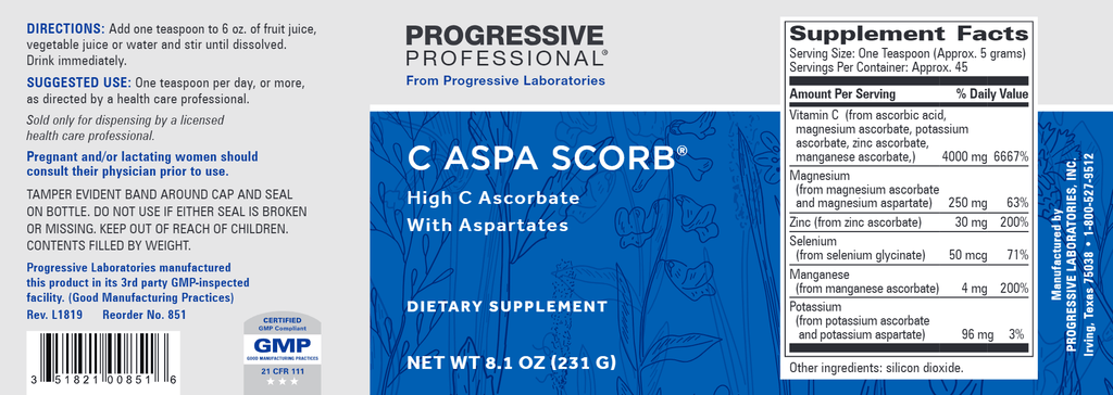 C Aspa Scorb was formulated as a mineral transporter based on the results of studies by several researchers, principally Hans Neiper, M.D., of Hanover, West Germany.