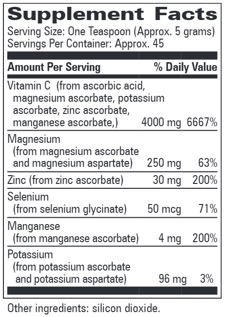 Note: Calcium & Sodium ascorbate have been intentionally left out of this formula.
