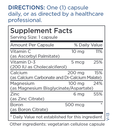 These essential minerals and vitamins together with vitamin D provide nutritional support to help maintain healthy bones.*