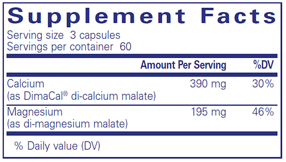 Calcium and magnesium malate in a 2:1 ratio; may reduce the risk of osteoporosis.
