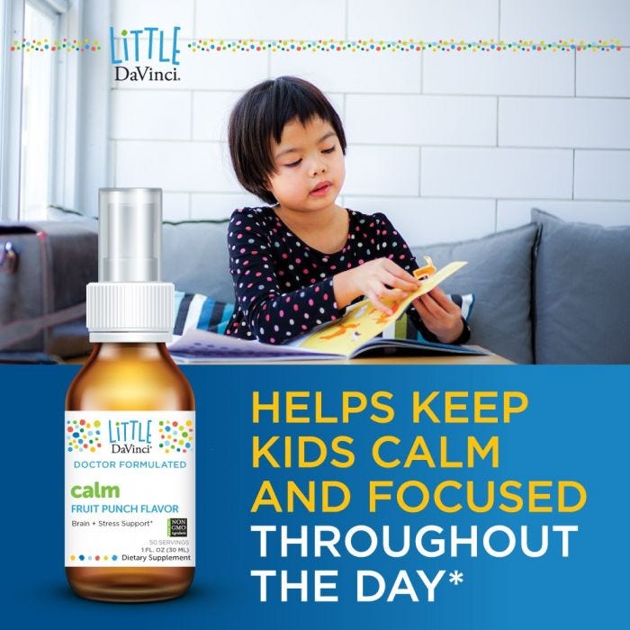 Calm is for parents who need help keeping their kids relaxed and at peace even during the most stressful of times.* It contains L-Theanine, a component of green tea that helps settle the brain.* This amino acid balances brain chemicals important for calm behavior.* L-Theanine also triggers the production of alpha brain waves, which promote deep relaxation and mental alertness without causing drowsiness.* Plus, L-Theanine boosts levels of other calming amino acids such as dopamine, GABA, and tryptophan.* What’s more, L-Theanine promotes a healthy response to stress.*