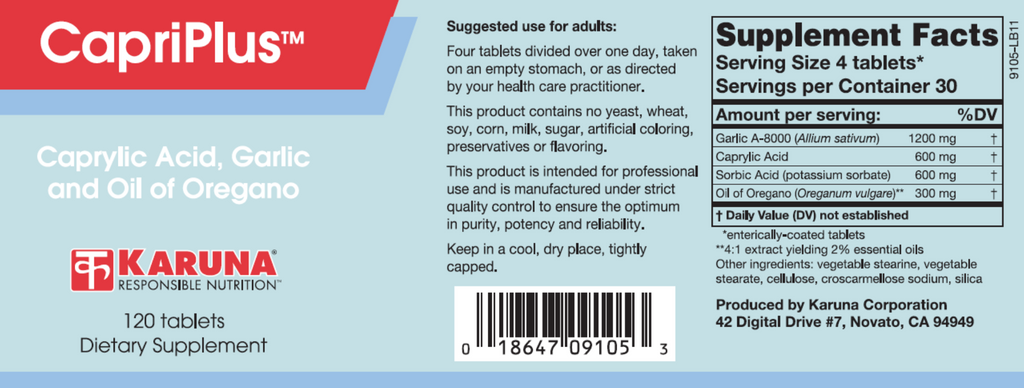 CapriPlus is a complex providing a broad spectrum of high potency nutrients to support a healthy balance of Candida albicans.* CapriPlus tablets are enterically coated for optimal intestinal release and patient compliance.