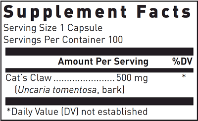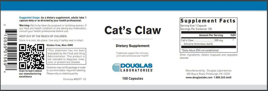 Cat's claw (Uncaria tomentosa), provided by Douglas Laboratories®, supplies 500mg of Cat’s Claw in a gelatin capsule.