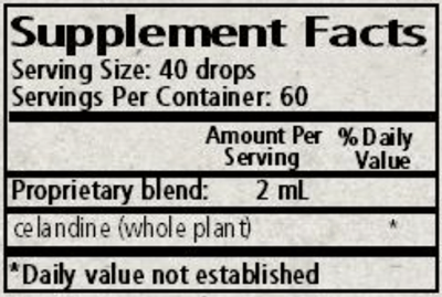 Ingredients: Celandine Organic whole plant, 1:1.6 fresh in a base of organic cane alcohol and spring water.