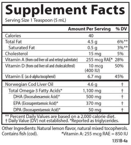 Carlson Cod Liver Oil is available in lemon, green apple, fruit splash, or natural flavor.