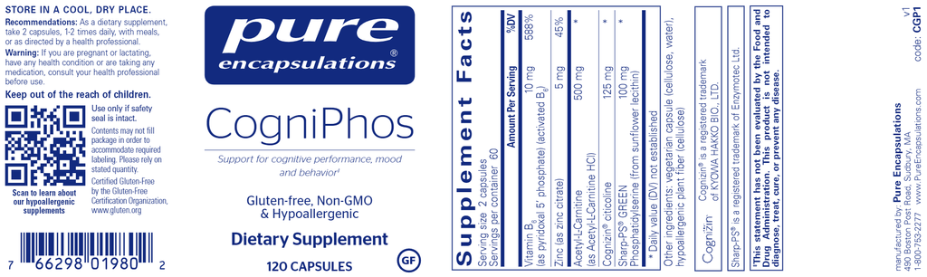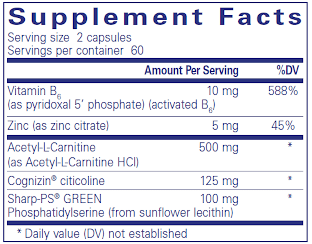 CogniPhos offers a blend of clinically researched Cognizin® citicoline, acetyl-L-carnitine, phosphatidylserine, and cofactors to promote cognitive function, positive mood and behavior.