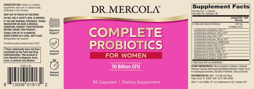 Women of all ages need effective probiotic support for their unique needs, including vaginal health. Complete Probiotics for Women (70 Billion CFU) promotes optimal health with three additional Lactobacillus strains that shows value for women’s vaginal health – with a total of seven of the most dominant Lactobacilli probiotic species. This high-potency formula is suitable for both short-term and long-term maintenance, supporting a healthy gut microbiome, immune function, cellular health and much more.*
