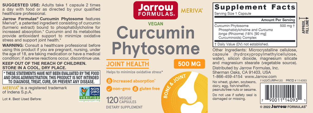Meriva®, a phytosome form of curcumin, is a patented ingredient consisting of curcumin (turmeric extract) bound to phosphatidylcholine for increased absorption. Curcumin and its metabolites provide antioxidant support to minimize oxidative stress.*