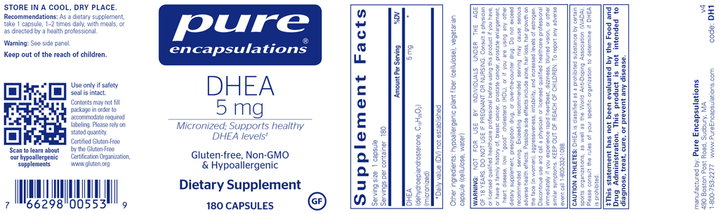 Pure Encapsulations DHEA is micronized to help increase absorption in the body. DHEA supports healthy regulation of fat and mineral metabolism, as well as endocrine and reproductive function, and energy levels.