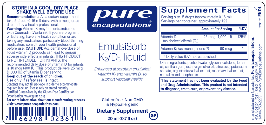 Enhanced-absorption emulsified vitamin K2 and vitamin D3 to support vascular health‡
