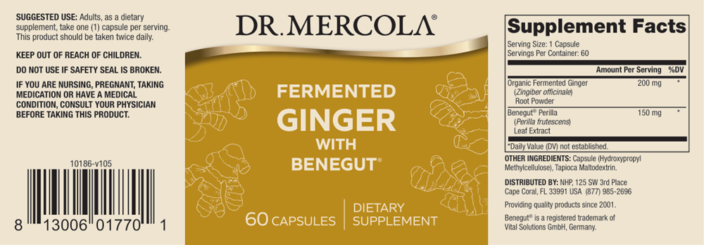 Fermented Ginger also contains a scientifically proven, proprietary standardized extract of Perilla leaves called Benegut®. This unique botanical appears to interact with your neurological system to counteract the effects of stress and other psychosocial factors via your gut-brain axis.*