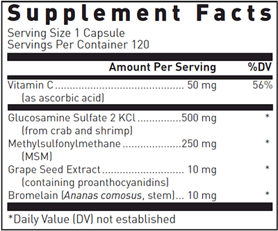 Glucosamine MSM Forte™ capsules contain 500 mg of pure glucosamine sulfate and 250 mg of methylsulfonylmethane (MSM). Ascorbic acid and bromelain are also included to provide additional aid in maintaining the health of aging joints. Individual results may vary.