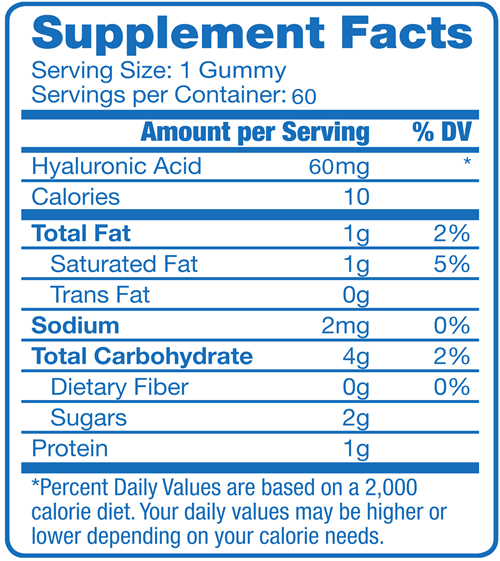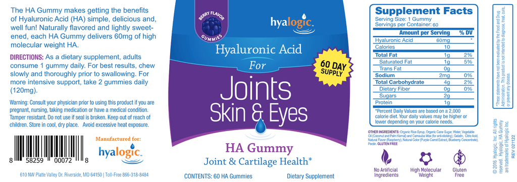 The HA Gummy makes getting the benefits of Hyaluronic Acid (HA) simple, delicious and, well…fun! After all, a nutritional supplement cannot help you unless you take it. Naturally berry flavored and lightly sweetened, each HA Gummy delivers 60 mg of premium quality, high molecular weight HA. Best of all, it tastes so good, taking it feels like a treat!