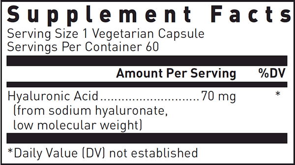 Hyaluronic Acid supplies 70 mg of low molecular weight hyaluronic acid in each capsule for joint and skin health.