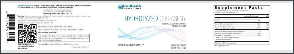 Hydrolyzed Collagen+ is a unique powder formulation that revitalizes the skin for a glowing, youthful appearance. Collagen peptides with hyaluronic acid, HydroPeachTM Ceramides, and collagen builders support healthy skin by promoting collagen production, moisture retention, and skin elasticity.