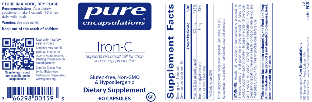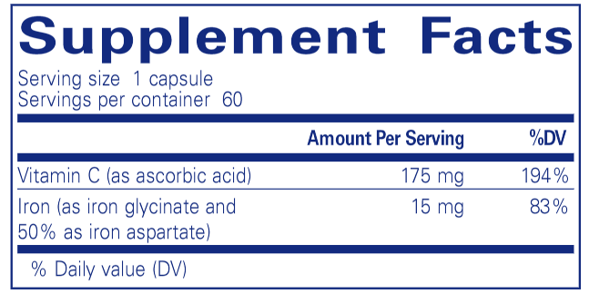 Iron-C provides a highly utilizable form of iron to support optimal muscle function. Iron-C helps transport oxygen and carbon dioxide throughout the body, which initiates muscle contractions.