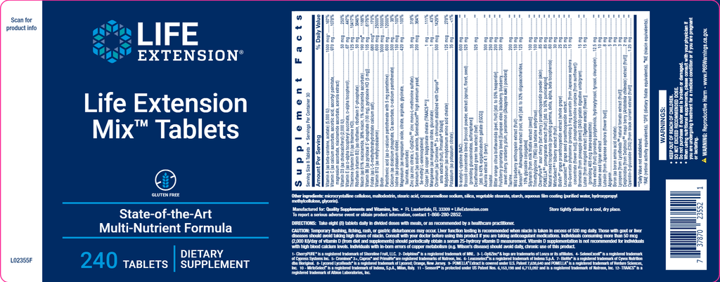 Life Extension Mix™ is an advanced, high-potency vitamin, mineral, fruit and vegetable supplement that provides all the daily nutrients your body needs to form the cornerstone of a comprehensive health maintenance program. Life Extension combined nature’s most important nutrients into one product, eliminating the need to take dozens of separate supplements.