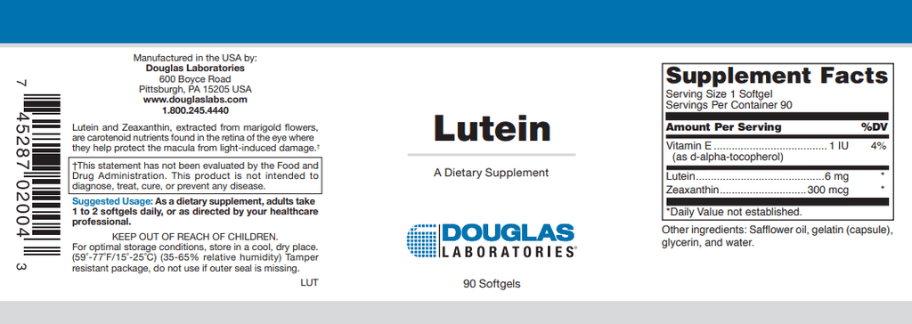 Lutein, provided by Douglas Laboratories®, is extracted from Marigold flower petals, a potent natural source. In addition, each softgel provides significant amounts of natural zeaxanthin which is a structurally and functionally similar carotenoid.