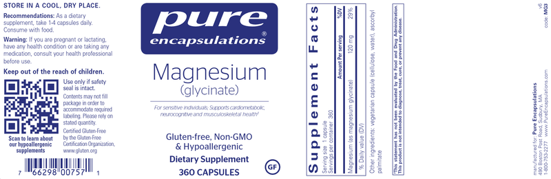 Magnesium (glycinate) is a highly bioavailable magnesium chelate, which supports the metabolism and utilization of carbohydrates, amino acids, and fats. Magnesium (glycinate) helps activate enzymes for physiological functions including cardiac health.*