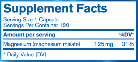 Magnesium Malate supports optimal muscle, tissue, bone and tooth health, and promotes healthy macronutrient metabolism. Magnesium, a critical cofactor in more than 300 enzymatic reactions involving energy metabolism and protein synthesis, is essential for the normal structure and function of tissue and organs. Magnesium is involved in numerous processes that affect muscle function, including oxygen uptake, energy production and electrolyte balance.*