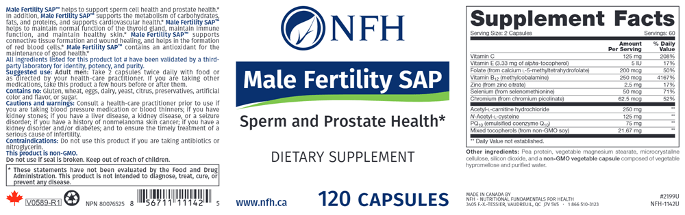 Increasing evidence suggests the effective role of nutritional supplementation in supporting healthy sperm quality. Male Fertility SAP is a synergistic formulation of key evidence-based nutraceuticals that can help support healthy sperm quality and sperm-cell health. Male Fertility SAP helps support prostate health, maintain cardiovascular health and healthy glucose metabolism.*