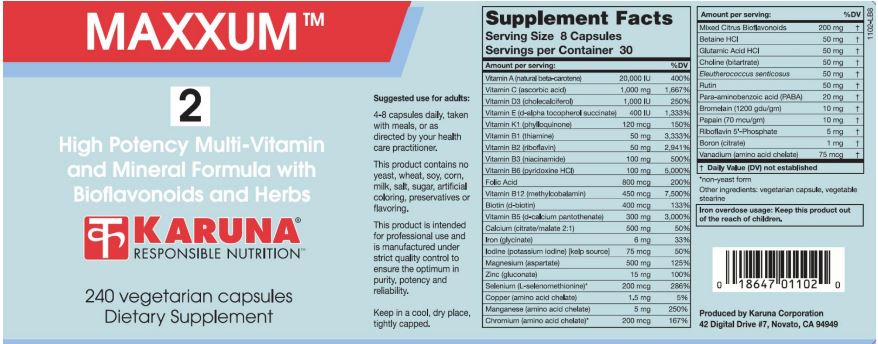 MAXXUM 2 contains iron and is ideal as a maintenance multi for individuals at risk of iron deficiency, including menstruating women. The unique MAXXUM 2 formulation includes practitioner-requested ingredients including digestive support from HCl and enzymes. Capsules are often preferred for their smaller size and quick dissolution. The formulation of this very popular supplement has been left in its original form at the request of health care professionals whose patients have used it with confidence over the years.