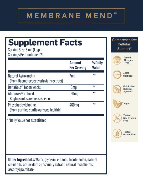 Support Cellular Longevity – Potentially harmful inflammatory activity — a hallmark of aging — happens within our cells, too. The powerful antioxidant effects of astaxanthin, vitamin E, and fatty acids in Membrane Mend™ work fluidly to help balance inflammation at a cellular level.